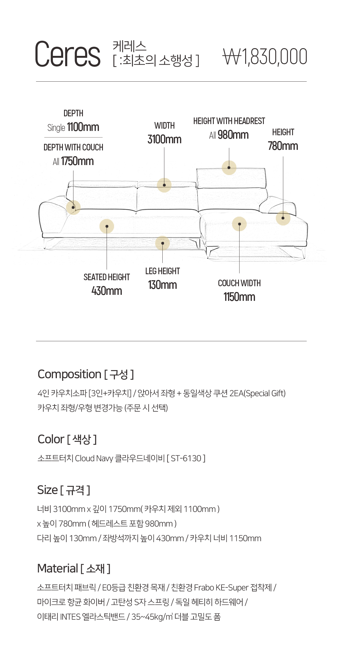 카우치 좌형/우형 변경가능 (주문 시 선택)
