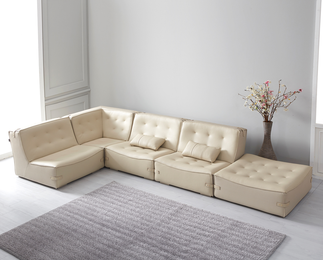 사이즈 W4140 X 1020(1100) X 830 (mm) 구성 3인, 4인, 5인, 카우치, 스툴구성 변경 가능 소재 가죽 or 패브릭 변경가능 컬러 Gray(그레이) 색상변경가능 | 외장재 친환경 통가죽 내장재 고밀도폼, 이태리 엘라스틱밴드, S자스프링, 헤드레스트 특징 - 원하는데로 배치 구성이 가능한 소파 - 깊은 폭과 넓은 등받이가 특징 - 폭신한 등받이로 더욱 편안한 소파 * 주문제작 제품 특성상 약간의 오차가 발생할 수 있습니다. |