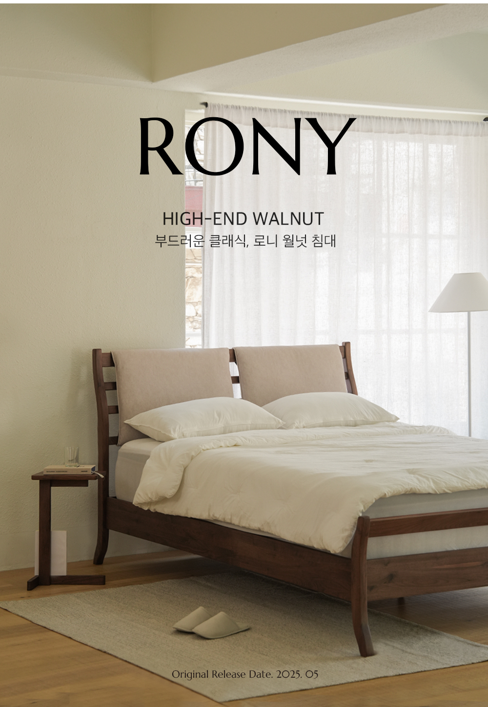 라미에스 로니 월넛 호두나무 원목 침대 프레임 SS Q K LK
