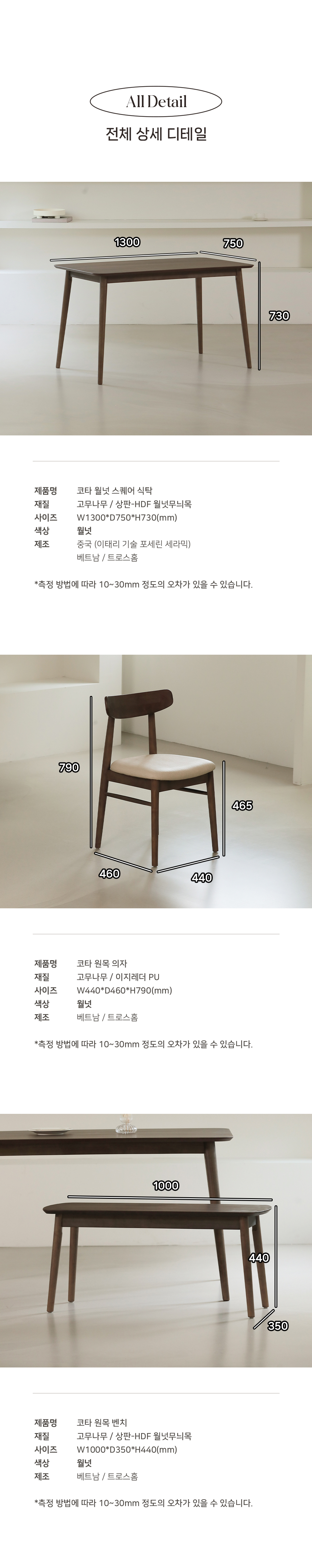 COTTA : 코타 원목 월넛 스퀘어 식탁 1300